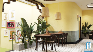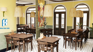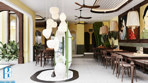 Thiết kế mang một chút hoài cổ, nhưng không kém vẻ sang trọng. Phương án là sự hòa quyện về đẹp không gian hiện đại của nhà hàng nhưng vẫn đảm bảo tính riêng tư cho gia chủ, tối ưu công năng, kiến tạo nên giá trị kết hợp giữa hai không gian.