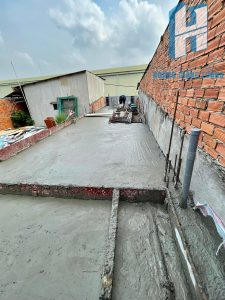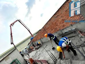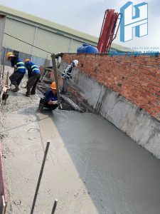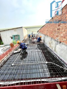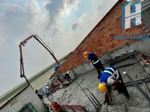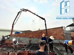Hình ảnh đội ngũ Hoàng Giang Lương thi công thực tế. Anh em công nhân đổ bê tông dầm sàn tầng 1.
